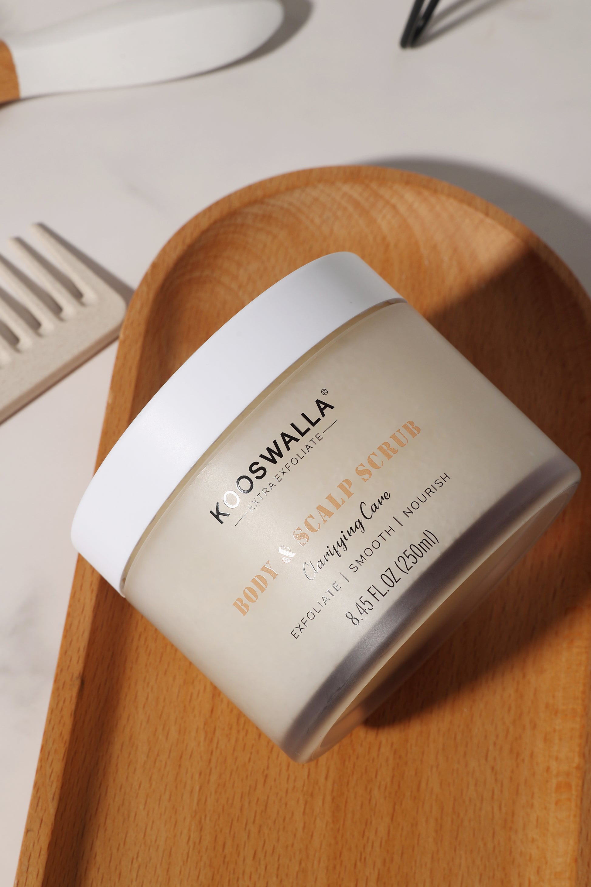 Kooswalla Deep Clean Exfoliate is a gentle exfoliant designed to renew both the skin and scalp. It removes dead cells, buildup, and excess oil, promoting a deep cleanse that supports a healthy scalp and leaves the skin fresh and revitalized.